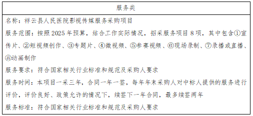 二、项目名称:祥云县人民医院影视传媒服务采购项目