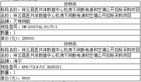 标段名称:祥云县医共体数据中心机房不间断电源和空调公开招标采购项目