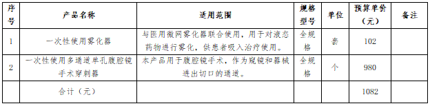 一、项目名称:祥云县人民医院一次性使用雾化器和一次性使用多通道单孔腹腔镜手术穿刺器耗材采购项目