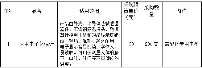 根据政府采购相关规定及《祥云县滇西医疗物资应急储备库非药品类医疗物资供应链实施方案(暂行)的通知》,我单位对祥云县人民医院医用电子体温计采购项目进行询价采购活动。现欢迎具有相应服务和完成该项目能力的供应商参与询价活动。