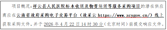 项目名称:祥云县人民医院标本收送及物资运送等服务采购项目